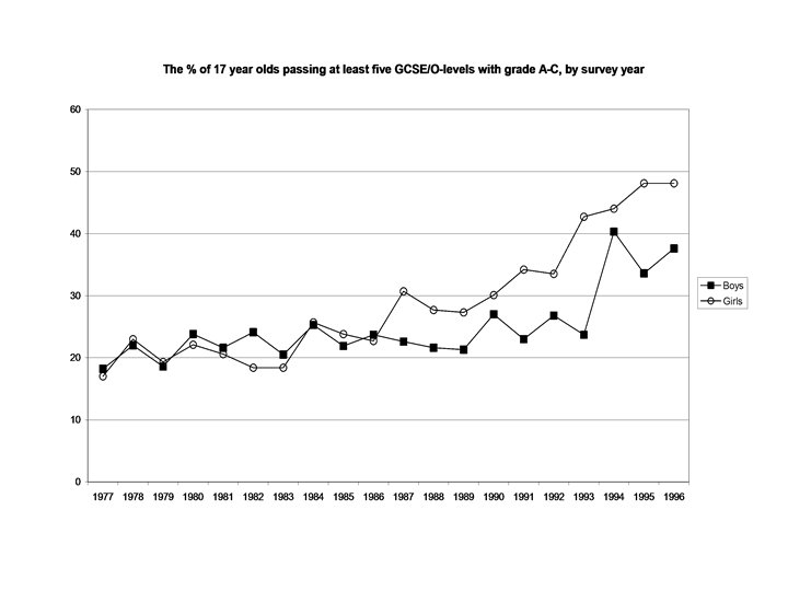 Explanations: media • ‘Laddish culture’/ ‘macho’ peer groups / ‘too much football’ • ‘Teachers giving up on boys’ • ‘Extinction’ of male teachers at primary school • Girls mature earlier • Coursework element in exams