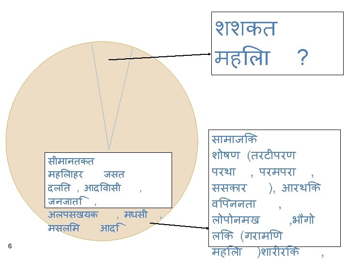 Issues 22 GESI Issues Women equity, equality, empowerment, Mainstreaming, participation and so on. Janjatis/ Adiwashi Culture, Language, Recognition and so on. Madheshi Identity, Mainstreaming and so on Muslim Religion, Minority, Poverty and so on. Dalits Poverty, Untouchability and so on. Remote and marginalized areas Economic and Infrastructural Development and so on. Senior Citizen, children, Social protection