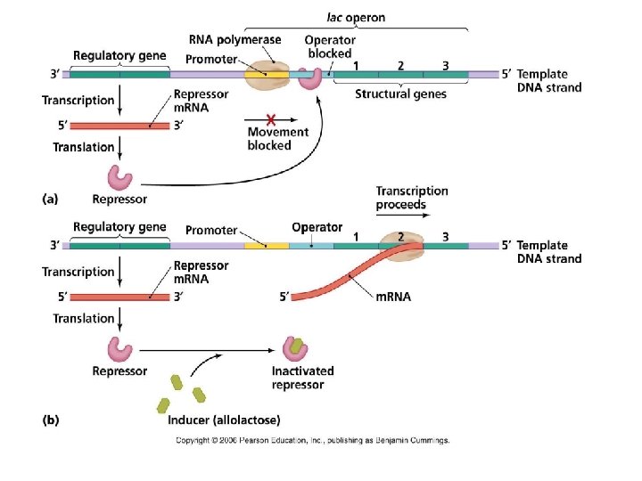 Prokaryotic Gene Control Mechanisms lac operon – Repressor under “Positive control” (inducible operon) - Operon is expressed when an inducer inactivates the repressor proteins - Repressor protein detaches from operator - RNA polymerase can transcribe genes for lactose metabolism trp operon – Repressor under “Negative control” (inducible repressor) - Operon is expressed when tryptophan is absent in the cell - Repressor protein is inactive - RNA polymerase can transcribe genes for tryptophan synthesis