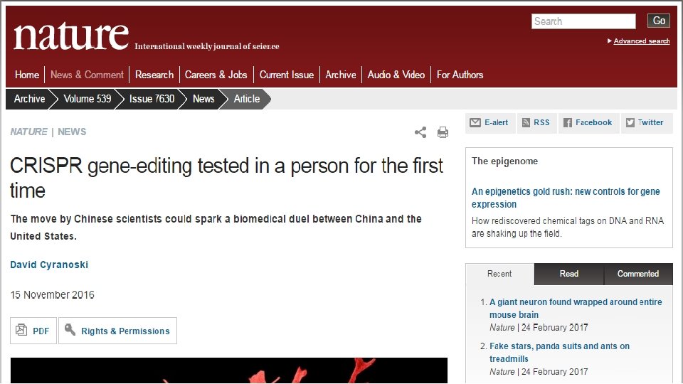 • The CRISPR-Cas system was selected by Science as 2015 Breakthrough of the Year. • The CRISPR-Cas 9 system currently stands out as the fastest, cheapest and most reliable system for ‘editing’ genes.