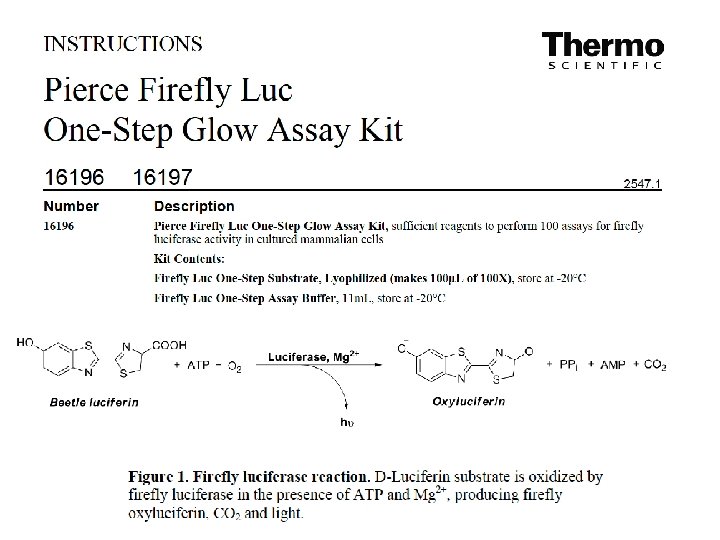Luciferases are a class of oxidative enzymes that act on a specific substrate causing the production of photons( firefy and its recombinant derivates, Luc 2, . . luciferin + ATP → luciferil adenylate + PPi luciferil adenylate + O 2 → ossiluciferin + AMP + photons