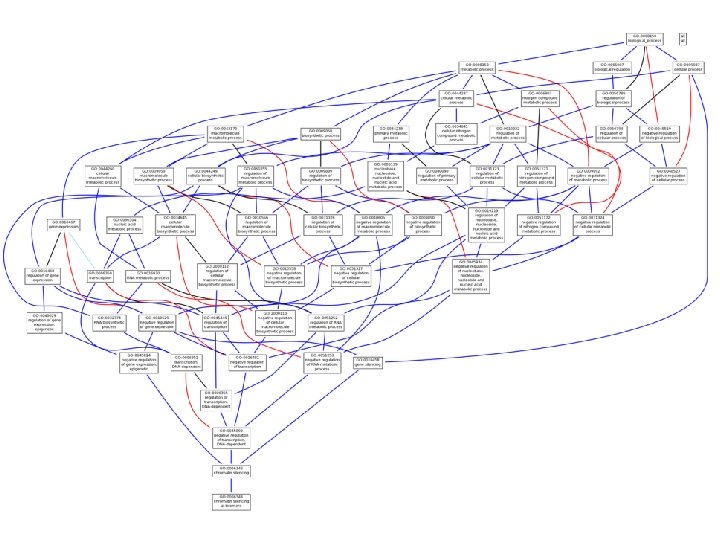 Still far from being perfect! § A shared functional vocabulary § Systematic linkage between genes and functions Considers only a few genes Arbitrary! § A way to identify genes relevant to the condition under study Ignores links between GO categories Limited hypotheses § Statistical analysis (combining all of the above to identify cellular functions that contributed to the disease or condition under study) § A way to identify “related” genes Simplistic null model!