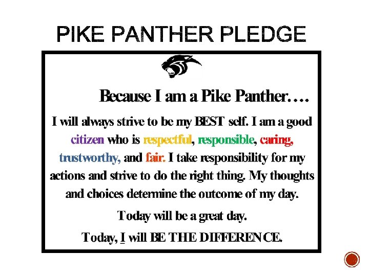 § We are the Pike Panthers! § National PTA School of Excellence § Schools to Watch § Robotics team went to State § Principal Jones was selected as Principal of the Year for TASSP § Groups students can be involved in: § NJHS – 8 th grade § Student Council § FCA- all grades § OVOC (One Voice, One Choice) Counseling and School Guidance Committee.