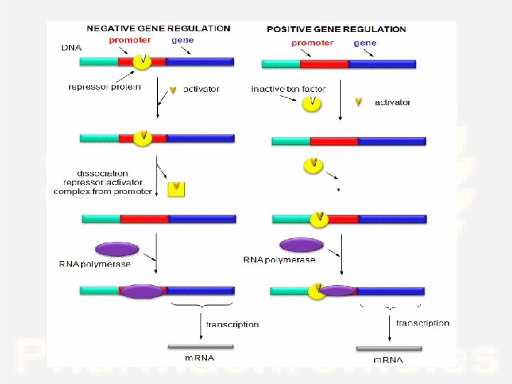 Gene regulation • Gene involved in a metabolic pathway are often present in a linear array called operon • Operon can be regulated by a single promoter or regulatory region • Cistron is the smallest unit of genetic expression • A single m. RNA that encodes more than one separately translated protein is called poly cistronic m. RNA