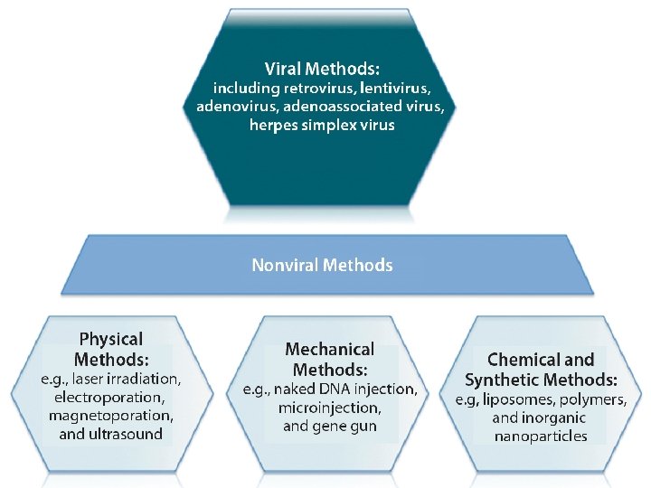 Non viral vectors �Non-viral vectors are safer, of low cost, more reproducible and do not present DNA size limit. �The main limitation of non-viral systems is their low transfection efficiency, although it has been improved by different strategies and the efforts are still ongoing. �However, viral vector has dominated the clinical trials in gene therapy for its relatively high delivery efficiency.