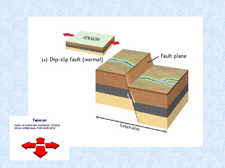 Normal Fay: Fay düzleminin iki yanında bulunan blokların fay düzleminin eğimi boyunca birbirine nazaran kayarak hareket etmesi sonucu meydana gelirler. Normal Fay