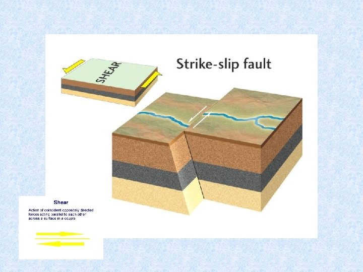 FAYLAR Kayaçlarda gözle görülebilecek kadar kayma hareketi gösteren kırıklara Fay denir. Faylarda kayma hareketinin oluştuğu düzleme fay düzlemi veya fay aynası denir. Fay düzleminin eğik olması durumunda birbirine kıyasla kayan bloklardan birisi fay düzleminin üzerinde, diğeride altındadır. Fay düzleminin üzerinde bulunan bloka “tavan bloku” altındakine “tavan bloku” adı verilir.