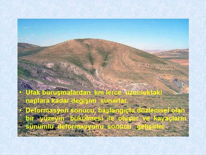 Kıvrım Tabakalı kayaçların tektonik kuvvetlerin etkisiyle kazandıkları dalga şeklindeki deformasyonlara kıvrım, meydana gelen olayada kıvrımlanma denir.