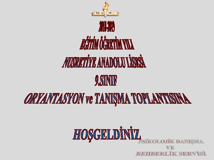 • GENEL TANITIM • OKUL KURALLARI ve OLANAKLARI • ORTA ÖĞRETİM KURUMLARI YÖNETMELİĞİ • SINIF GEÇMENİN KOŞULLARI • REHBERLİK VE PSİKOLOJİK DANIŞMA HİZMETLERİ SERVİSİNİN TANITILMASI