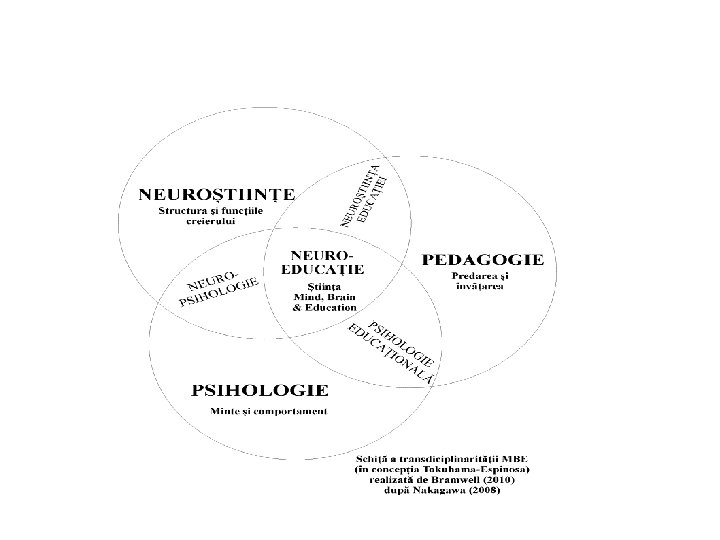 Neuroștiințele educației MBE Educaţia Mind & Brain – Neuroștiința educației (MBE = Mind & Brain Education = educația minții și a creierului ) Coroborează date din: neuroștiința cognitivă, neuroștiința dezvoltării cognitive, psihologia educațională, tehnologia educațională, teoria educației