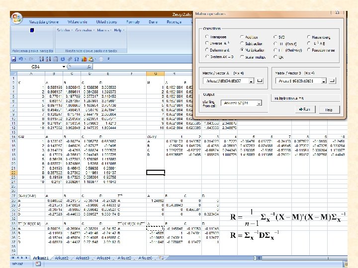 The coefficient of correlation We deal with samples For a matrix X that contains several variables holds The diagonal matrix SX contains the standard deviations as entries. X-M is called the central matrix. The matrix R is a symmetric distance matrix that contains all correlations between the variables