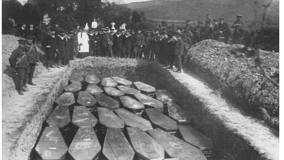 British Blockade & German U-boat response • Fighting on land at stalemate (trench warfare) • G. B. w/ Naval strength set blockade along German coast & by 1917 (3 yrs) taking effectfamine =750, 000 Germans (civilians) starved to death • what strategy & from what American war? • anaconda effect- Civil War • Germans responded w/ U-Boats (new weapon) 1 st month sank 90 ships /75, 000 deaths (fraction of starvation deaths) • Anything headed to G. B. sunk w/ out warning (too risky to warn-violates international rules of warfare- 1. warn target to stop 2. send boarding party 3. allow time for crew to board lifeboats before sinking ship(ex. of new weapons old tactics) Unrestricted Submarine warfare • What other new weapons with old style tactics? video
