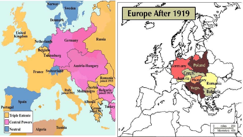 Treaty of Versailles • Treaty ending WWI • Defeated Central powers not invited! (big mistake why? • 9 new nations formed (Poland, Yugoslavia, Austria, Hungary, Czech. ) out of defeated country’s land (why is that significant? ) • Germany forced to pay for war damages $56 billion (destroyed German economy) why is that significant? ) • Wilson’s 14 points (League of Nations) – self-determination, Freedom of Seas, abolish secret treaties, no tariffs, reduce arms & League of Nation • (causes of war: MAIN how are they solved with these 14 points? ) • Allies punished & weakened Germany= determined to end German aggression once & for all (take all her colonies in Middle East, Asia & Africa) (how did that work out? )