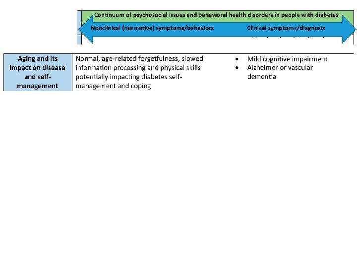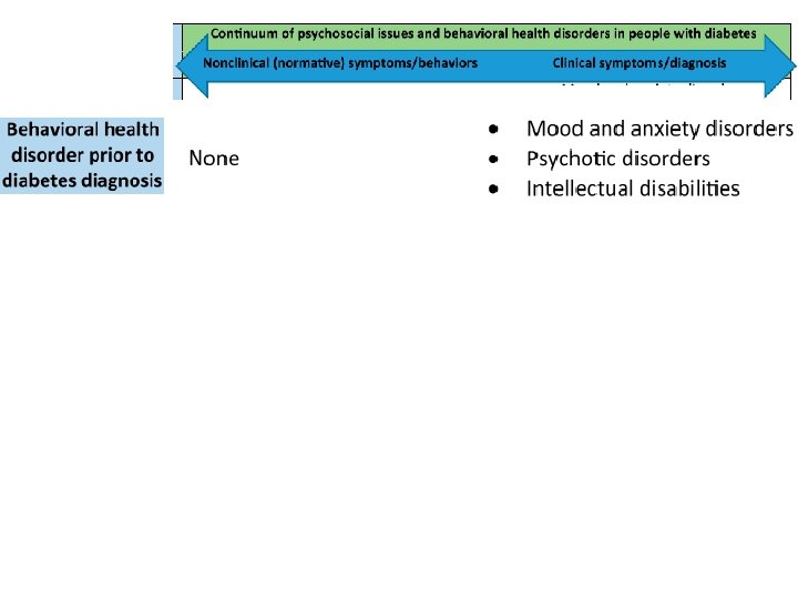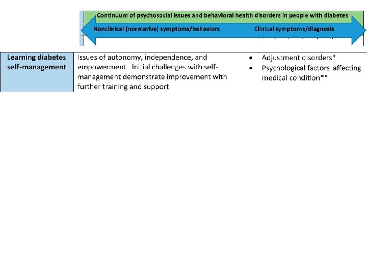 GENERAL CONSIDERATIONS IN PSYCHOSOCIAL CARE • integrated with collaborative, patient-centered medical care • assessment of symptoms of – Diabetes distress