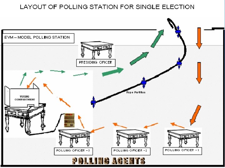 DUTIES AND FUNCTIONS OF POLLING OFFICERS II. ON THE DAY PREVIOUS TO POLL 6. ARRANGEMENT OF POLLING STATION a. Set up of PS (Slogans / Photo etc should be covered or removed) b. Set up of Voting Compartment c. Display of Notices.