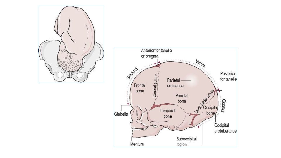 Praesentatio relation: part of fetal body – aditus pelvis • vertex (most frequent) • forehead, face, occiput (1 %) • pelvic end and feet • trunk, shoulder