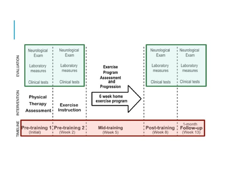 6 WEEK HOME EXERCISE STUDY FOR PEOPLE WITH CEREBELLAR DAMAGE (KELLER, BASTIAN 2014) q. Patients q 14 patients with cerebellar ataxia q. Assessments q. Walking speed q. Walking balance tests q. Intervention q. Home Physical Therapy