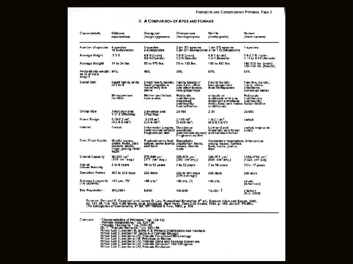 gibbons humans bonobos orangutans chimps gorillas Campbell and Loy, Humankind Emerging, 8 th ed, p. 138 f