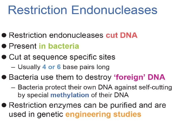 Ø Bacterial" immune system": destroy any "non-self" DNA Ø methylase recognizes same sequence in host DNA and protects it by methylating it; restriction enzyme destroys unprotected = non-self DNA (restriction/modification systems)