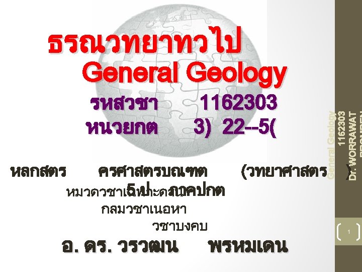 51 General Geology 1162303 Dr. WORRAWAT