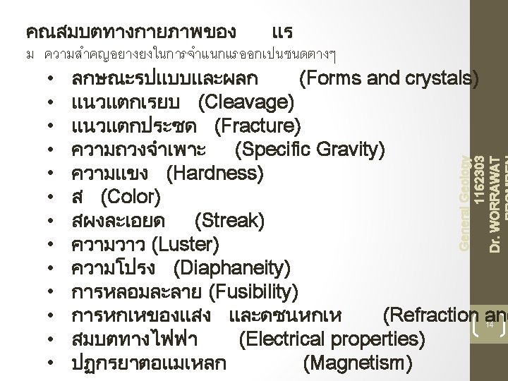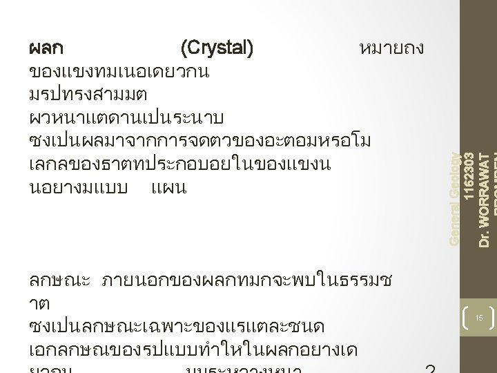 23 General Geology 1162303 Dr. WORRAWAT