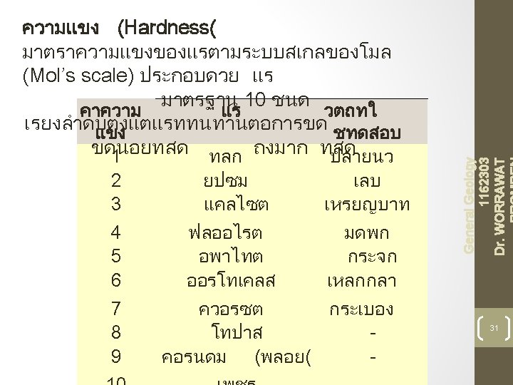 General Geology 1162303 Dr. WORRAWAT Hardness 32