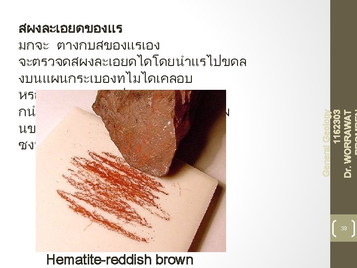General Geology 1162303 Dr. WORRAWAT The streak from pyrite is greenish-black. 40