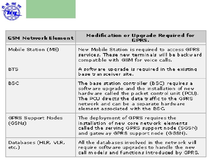 Packet Data Channel(PDCH) l l Physical Channel for GPRS Traffic PDCH are taken from all channels available in the cell Depending on current traffic load and priority of service, the physical channel are allocated to either GPRS or GSM services. Physical channels not currently used by GSM can be allocated as PDCH to increase the QOS for GPRS