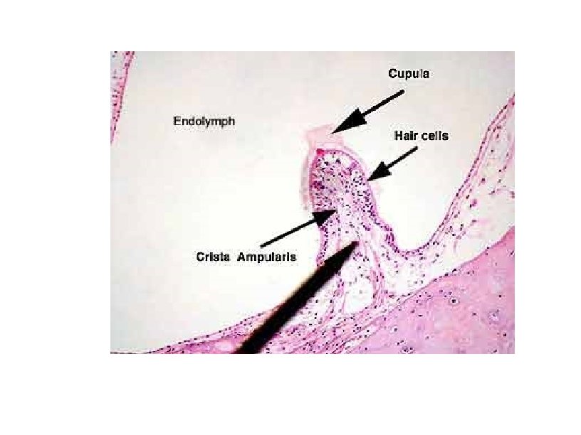 Equilibrium physiology • Located in the vestibular apparatus – Vestible • Utricle and saccule (sacs) within vesitble. – Receptor: Macculae (static equilibrium) » Hair cells (stereocillia) are embedded in the otholitic membrane which contain Ca. CO 3 (otoliths). Respond to vertical acceleration. – Membranous semicircular ducts • Ampulla (located at the base of each perpendicular duct). Mechism of dynamic equilibrium (angular acceleration). – Receptor: Crista ampullaris. Stereocilia covered by a gelatinous cupula. Endolymph stimulates the recptor.
