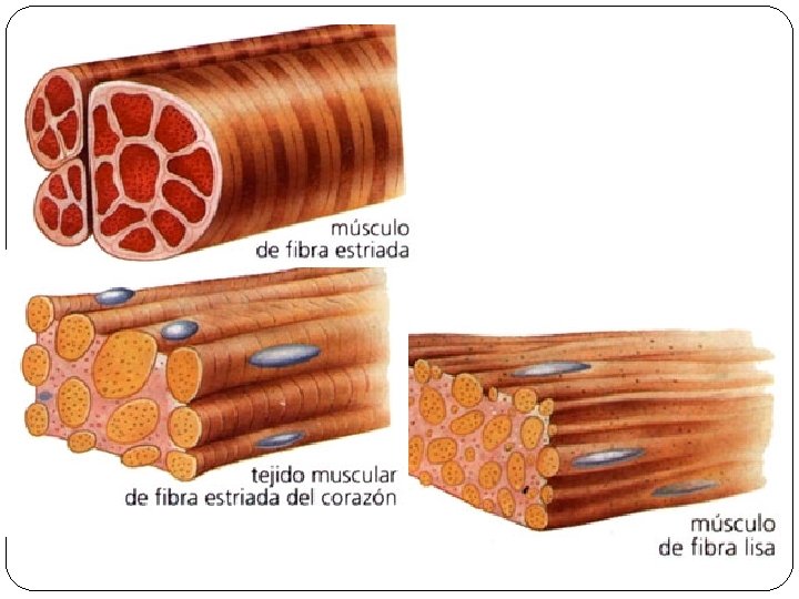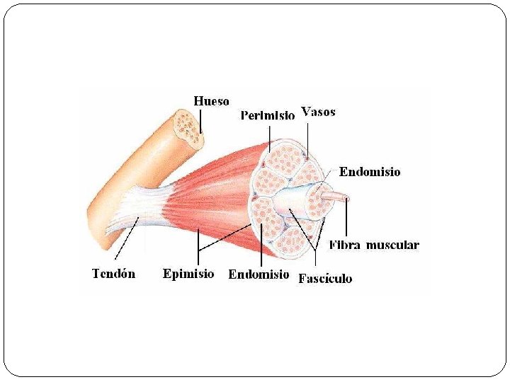 Tejido muscular esquelético. �Puede describirse como musculo voluntario o estriado. Se denomina voluntario debido a que se contrae de forma voluntaria. Un músculo consta de un gran número de fibras musculares. Pequeños haces de fibras están envueltos por el perimisio, y la totalidad del musculo por el epimisio.