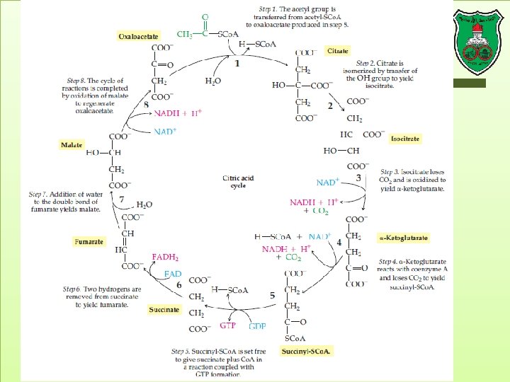 Citric acid cycle • Also known as Krebs cycle or tricarboxylic acid cycle • It describes the oxidation of the 2 carbons of acetyl-Co. A to give and transfer of energy to reduced coenzymes. • It is a cycle because the product of the final step, oxaloacetate is the reactant in the first step.