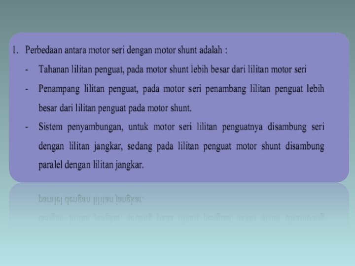 Penguatan kompon • Sifatnya diantara penguat seri dan Shunt Nilai kompon tergantung pada jumlah lilitan seri yang dililitkan pada inti kutub.