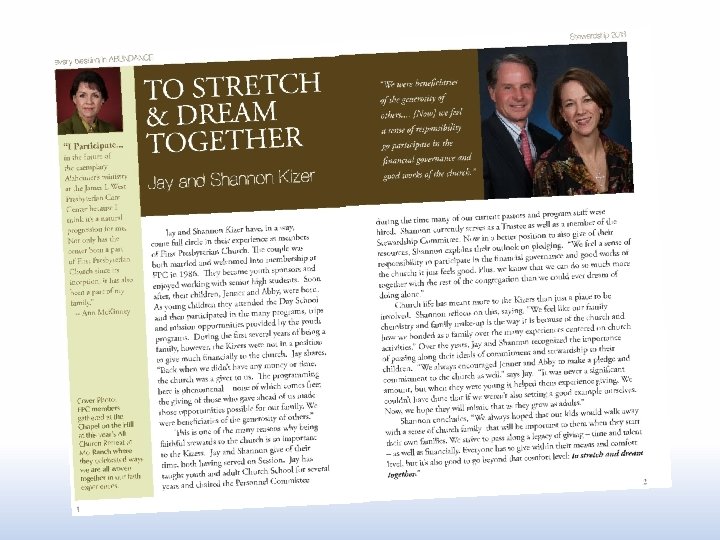 Money Cross Talk for All Generations: A Miscellany In the annual stewardship effort, target the message, design the experience. • Multiple mailings, generationally specific • Generationally sensitive brochures, letters, and appeals