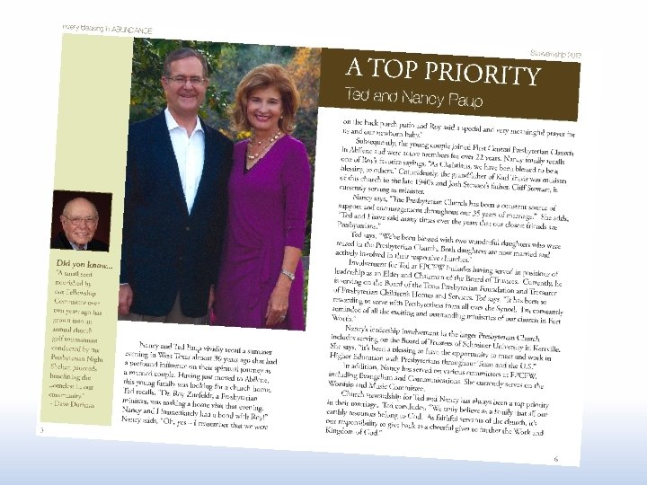 First Pres/Fort Worth Annual Pledges 2000 -2014 $ 3, 000 $ 2, 554, 678 $ 2, 407, 297 $ 2, 431, 736 $ 2, 500, 000 $ 2, 247, 343 $ 1, 864, 233 $ 2, 000 $ 1, 655, 570 2, 408, 983 $ 2, 320, 179 $ 1, 877, 815 $ 1, 810, 119 $ 1, 851, 668 $ 1, 848, 500 $ 1, 651, 927 $ 1, 641, 748 $ 1, 555, 564 $ 1, 500, 000 $ 1, 000 $ 500, 000 $2000 2001 2002 2003 2004 2005 2006 2007 2008 2009 2010 2011 2012 2013 2014