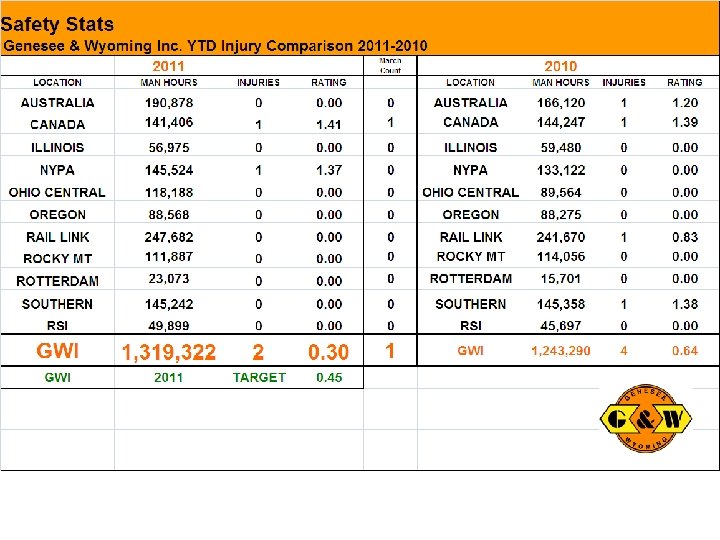 GWI Looking Forward v Continue to place strong focus on Safety v Grow the business o New customer opportunities in Europe and Australia o Expand with new and existing customers in North America v Grow our employees o Great people o Great attitudes v Good business to be in v Great company to work for