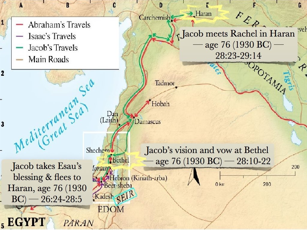 Laban pursues and after 7 days overtakes Jacob in the mts of Gilead — 31: 22 -42 Laban & Jacob enter a covenant — 31: 43 -55 Jacob serves Laban 7 years to marry Rachel but is given Leah instead then agrees to work for another 7 years for Rachel, age 83 — 29: 1530 Birth of Judah, Jacob’s first son by Leah, age 88 — 29: 35 Birth of Joseph — 30: 23 Jacob is blessed by God and is told to return to Canaan (1910 BC) —