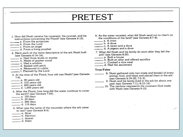 Genesis 6: 14 -16 The Ark Verse 14 is where Moses 1 -8 in the Pearl of Great Price ends. This ark was vast, designed to float, not sail --- and there were no launching problems. Verse 15: An 18 -inch cubit gives the measurements as 450 x 76 x 45 feet or 137 x 23 x 14 meters” (Alexander and Alexander, eds. , Eerdmans’ Handbook to the Bible, 132). Verse 16: “Window” Hebrew tsohar; some rabbis believed it was a precious stone that shone in the dark. (Ether 2: 23 -24, this might have influenced the Brother of Jared). Genesis 8: 6 tells of Noah opening the window of the ark which he had made.