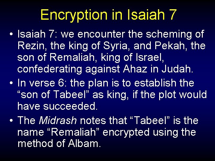 Bible Codes Other Known Codes in the Bible • Albam • Atbash