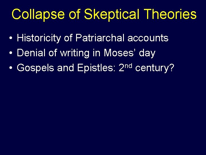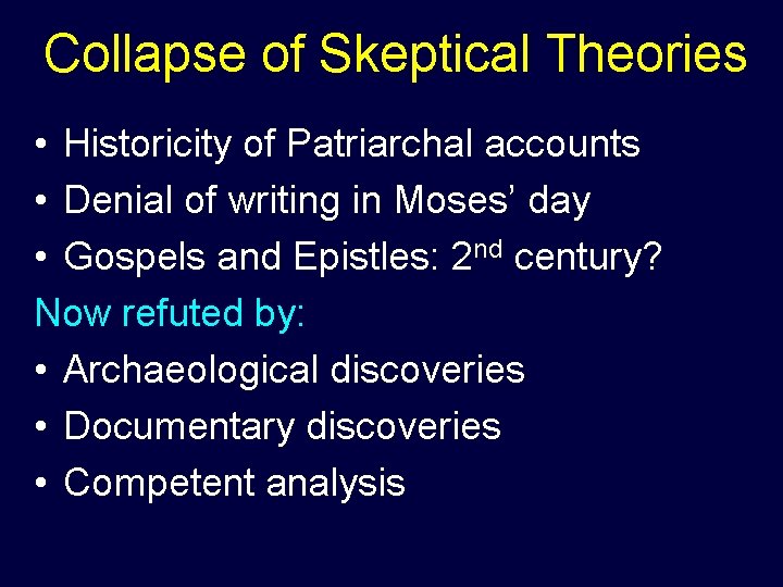Genesis anticipates all false philosophies: • Atheism (Genesis says the world was created by God) • Pantheism (Genesis says God is transcendent and distinguishable) • Polytheism (Genesis says there is One God) • Materialism (Genesis says that matter had a beginning) • Humanism (Genesis says that God, not man, is the ultimate reality) • Evolutionism (Genesis says “God created”) • Uniformism (Genesis says God intervenes in His creation)