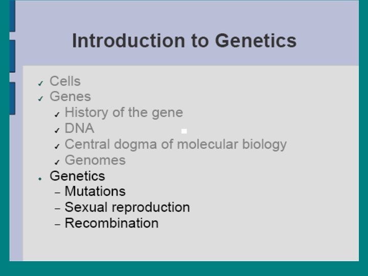 Introduction to Genetics • ● Cells • ● Genetics