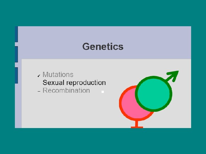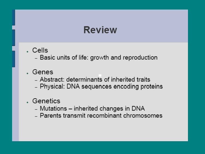 Genes & chromosomes • ● Chromosomes – structures of proteins & DNA in the cell’s nucleus • ● Distributed evenly upon division • ● Morgan (1910): Genes reside along the chromosomes