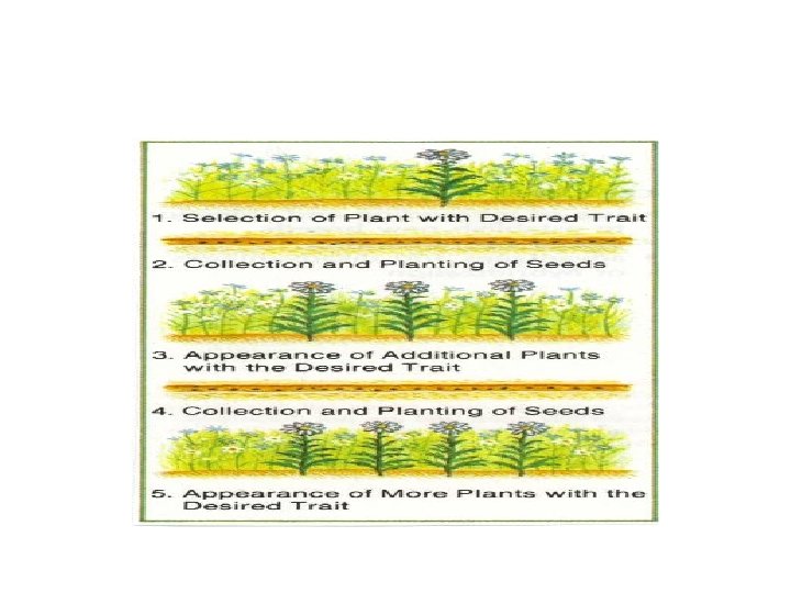CONTROLLED BREEDING • Humans allow only those plants or animals with particular traits to reproduce – Purpose is to produce offspring with traits that are desirable to humans – Often these traits make a plant or animal unfit to live in the wild