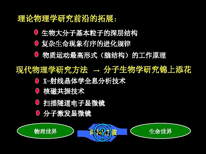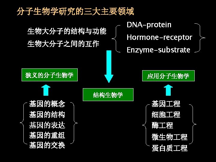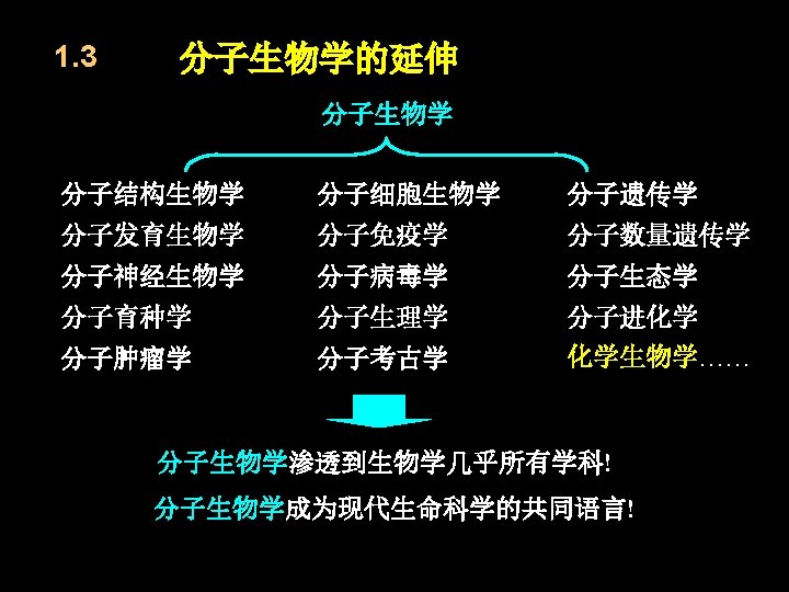 分子生物学发展的 三大支撑学科之三 (1936年 Sumner) Enzyme → Protein Biochemistry Nucleic Acid Chemistry Protein Chemistry