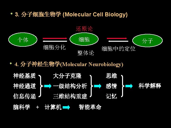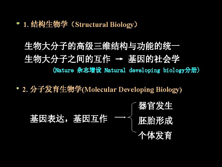 1997 S. B. 普鲁西纳 1998 R. 佛契哥特,F. 慕拉德和 L. 格纳洛 → Prion(朊蛋白) → NO cell message 2002 S. 布雷内, H. R. 霍维茨, J. 苏尔斯顿 → Apoptosis (凋亡) 线虫 F. Sanger received two Nobel prizes → Protein sequencing and DNA sequencing