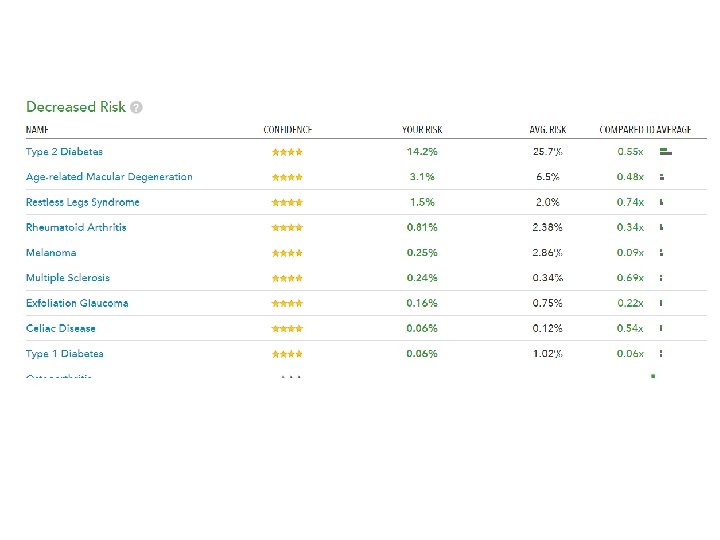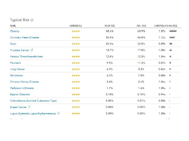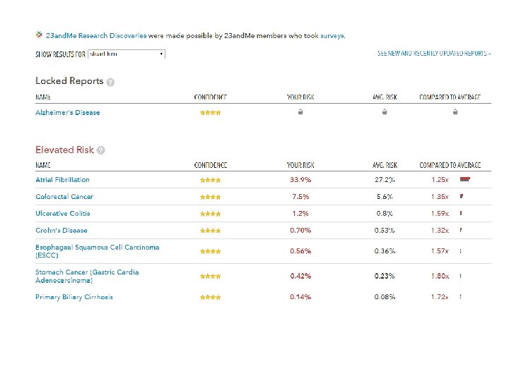Personal Genotyping • Voluntary. You can use a public genome file instead of your own. • Confidential – instructors will not ask who opted to be genotyped. • Private – Your own DNA information will not be revealed. • Counseling - genetic counseling via 23 and. Me and medical/psychological counseling via Dr. Alan Schatzberg (Psychology, Stanford).