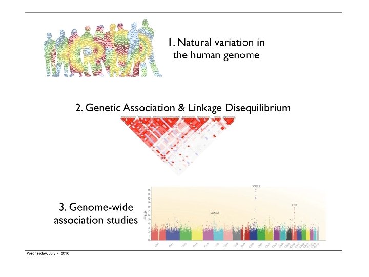 Linkage -Go to http: //genotation. stanford. edu/ -Load your genome, race -Under “presentations”, run “genetic linkage, part 1” -Click “look up exercise” -Click “submit my information” -Using the allele frequencies from class, calculate the chance of someone having your genotype. -Compare the predicted genotype frequency to the observed genotype frequency in the class. -Discuss. -Repeat for parts 2 and 3. Discuss.