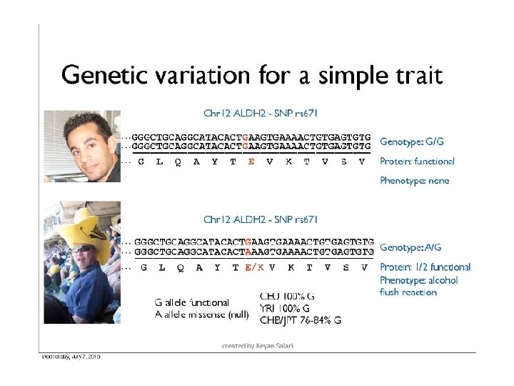 Course Requirements http: //stanford. edu/class/gene 210/web/html/course_requirements. html • Final Exam (40% credit) take home. – Scenario is that you are an MD diagnosing a patient. – You will be given the genotypes of a hypothetical family. The final will have various scenarios. – Extra credit. (10%) • a. You will be given the genotypes of 7 people (SK, KK, RT, NZ, MPS, GC). • b. You will be told ancestry and specific traits for these 7 people. • c. You need to match the genotype with the person.