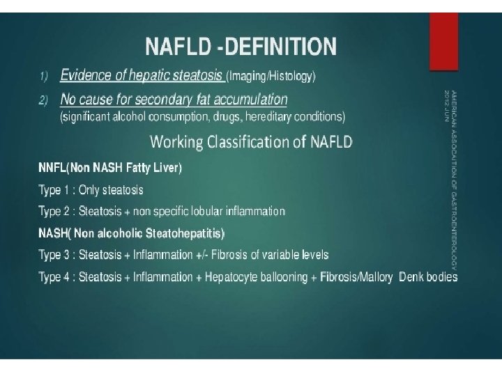 Natural History of NAFLD (~8 -13 ys) Simple Steatosis 12 -40% F 1 -2 fibrosis 5 -15% 0 -50% 1 -3% Sever fibrosis F 3 HCC