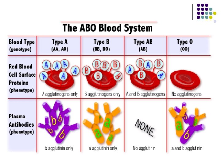 Codominance l Equal dominance l l Human blood ABO blood groups 3 versions l l A, B, i A & B alleles are codominant Both A & B alleles are dominant over the i allele The genes code for different sugars on the surface of red blood cells l “Name tag” of the red blood cell