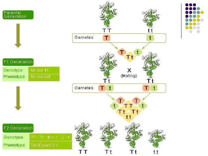 Every individual receives one copy of each gene from both parents T = Tall allele t = short allele Father Mother TT T tt T t sperm Tt You t egg
